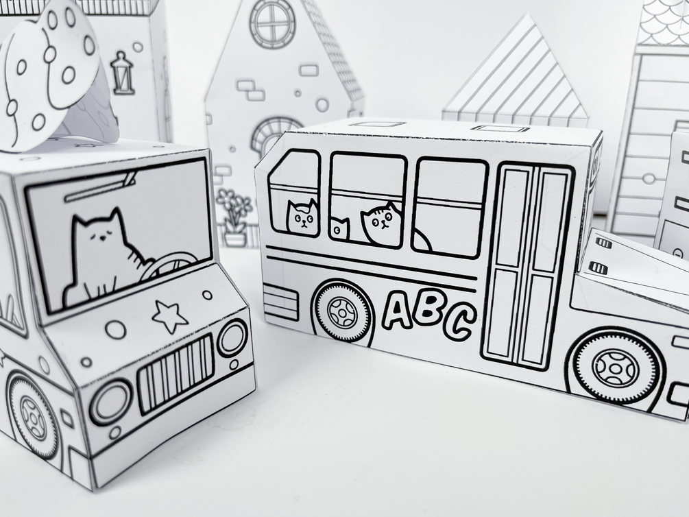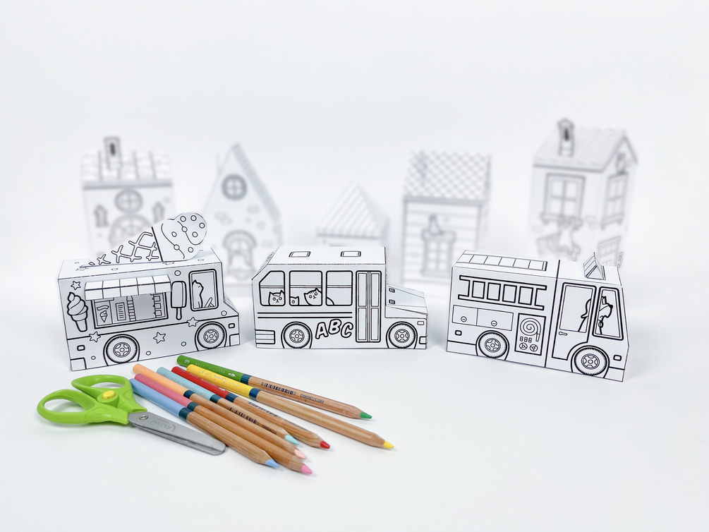 Paper Toy Cars Set 1, Printable Activity Sheets, Paper Craft Kit, Cut and Color Pages, Instant Download PDF, Arts & Crafts Activity for Kids
