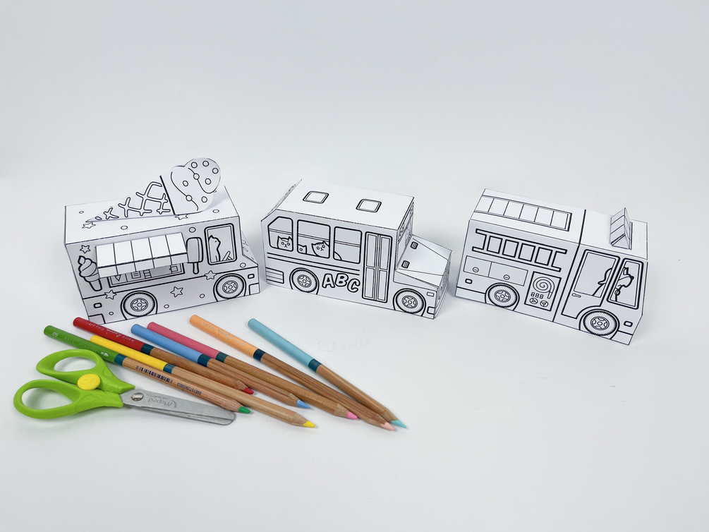 I present to you my second project, a collection of three paper cars that will delight and inspire your children! These cars are excellent for playtime, can improve your child's fine motor skills, and can also serve as adorable decorations or a fun party activity. This activity keeps them busy, but it will also help them develop their creativity and imagination.